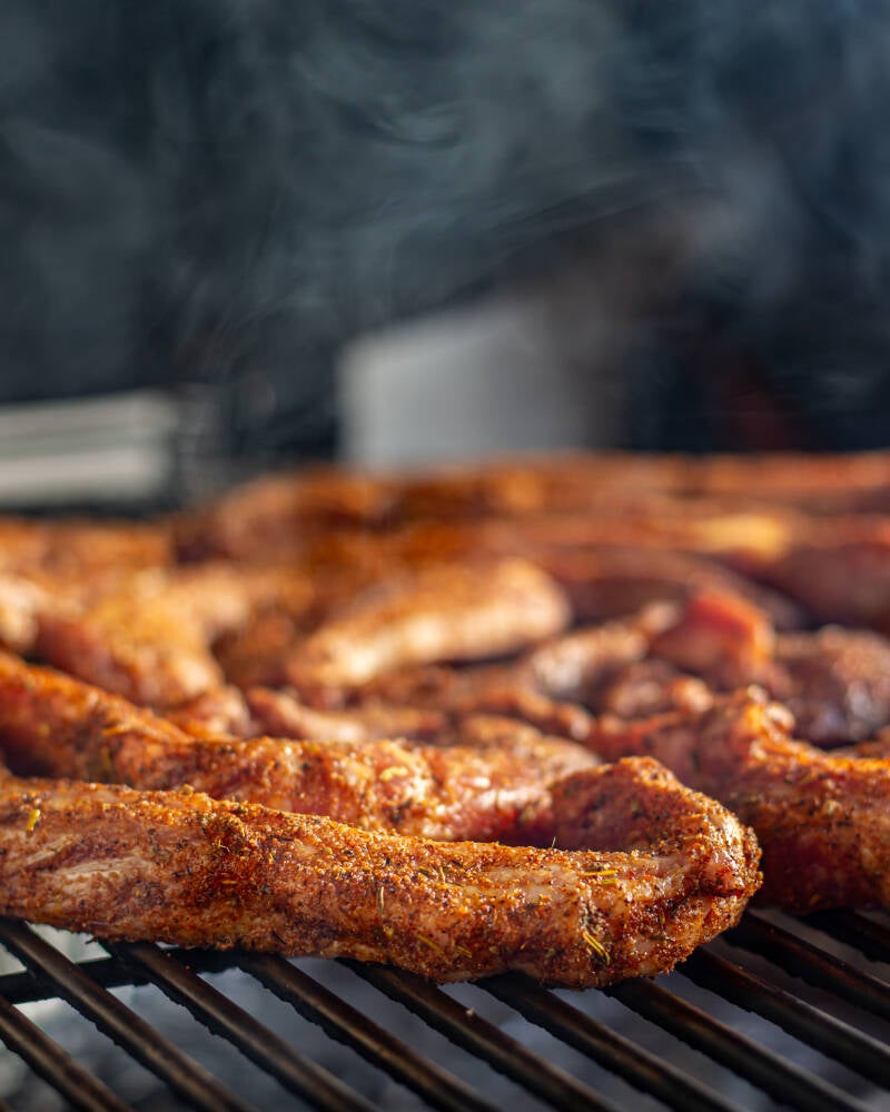 - Laat de ribfingers nu ongeveer 1 uur en 45 minuten roken/ garen (een uur effectieve rook is voldoende)